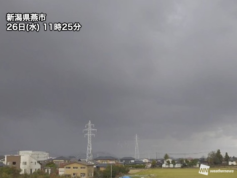 午後は高気圧の張り出しに伴って、日本海側の雨の範囲は縮小していく見込みです。ただ、新潟県の上越付近では雨雲が残りやすく、局地的に降り方が強まったり雷や霰(あられ)、突風を伴ったりする可能性があります。一旦止んだり降り方が弱まったりしても油断は禁物です。