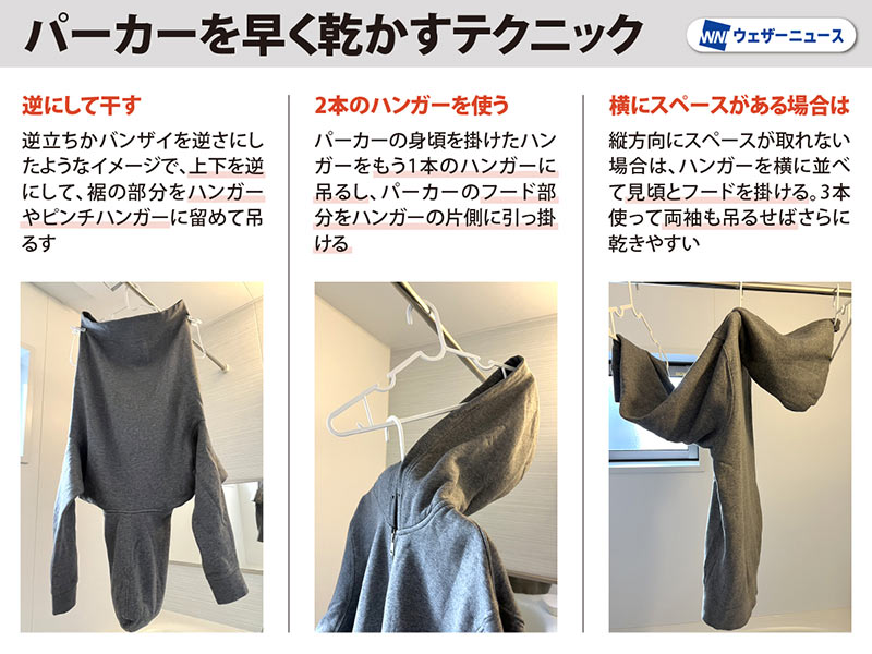 この時季、フード部分が乾きにくい! パーカーの賢い干し方は?