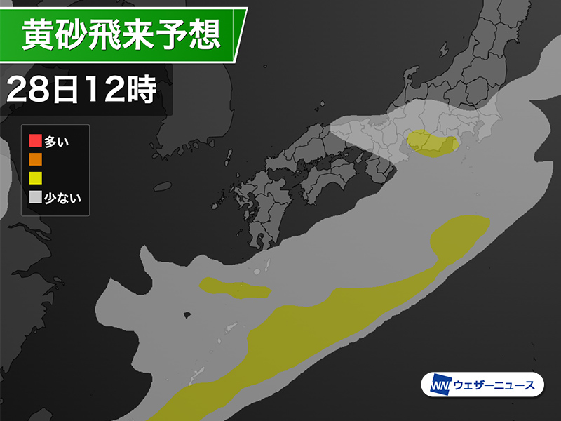 昨夜からは西日本を中心に黄砂が飛来し、今日28日(金)は霞んだ空となっているところがあります。