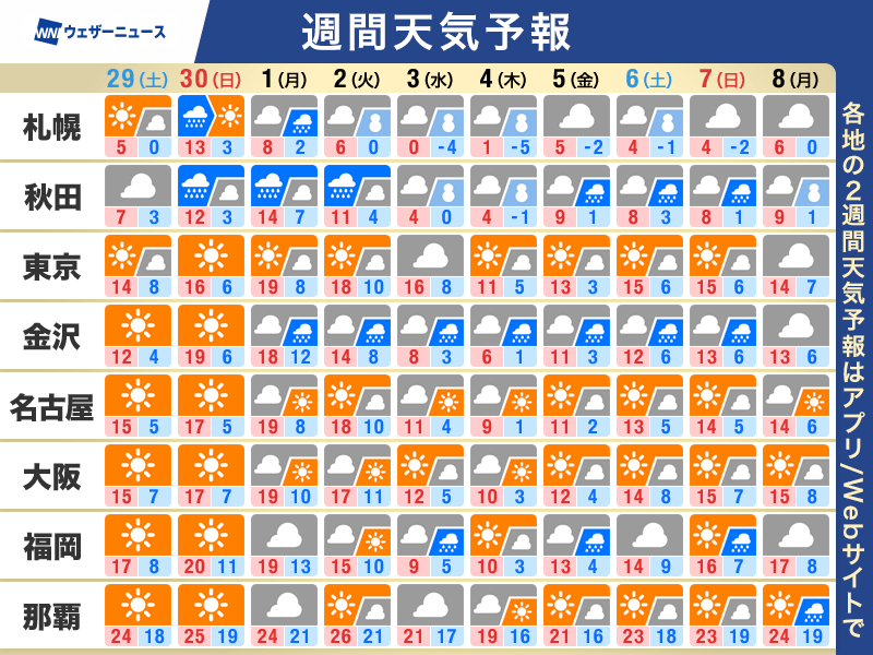 今日・明日〜2週間先までの週間天気予報今日・明日〜2週間先までの週間天気予報