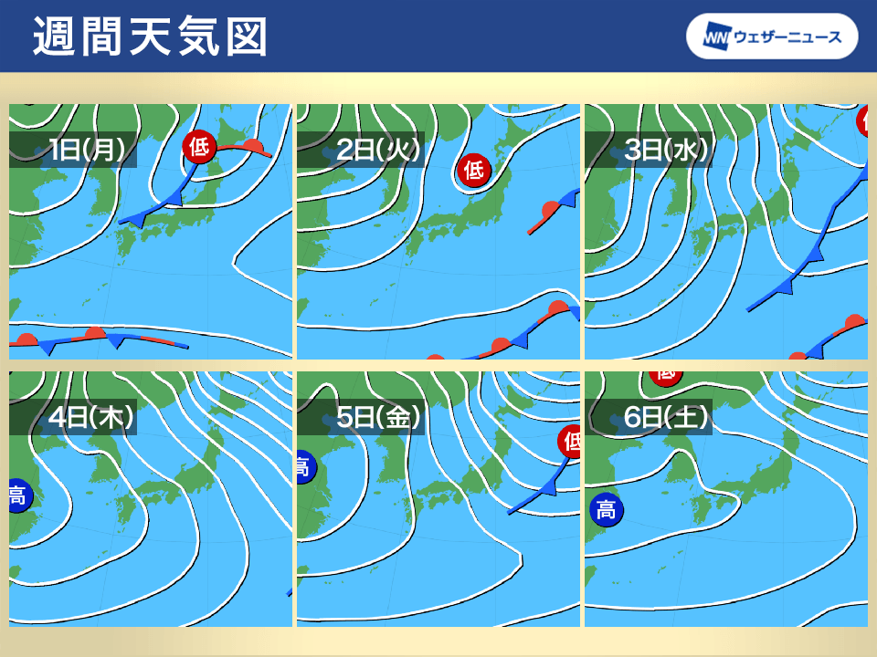 来週前半にかけては寒気の流れ込みは弱く、日中に日差しが届くところでは比較的過ごしやすく感じられそうです。
