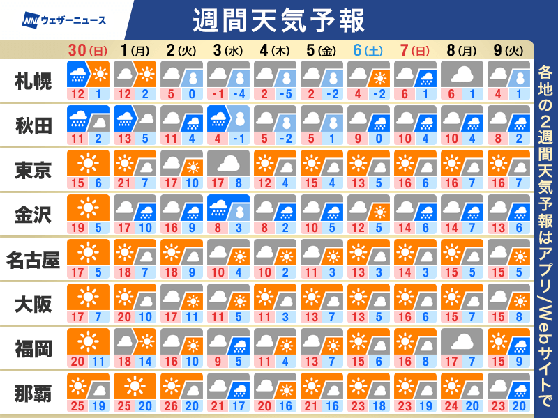 ただ、放射冷却の影響で朝晩は冷え込み、昼間との気温差が大きくなるため、体調管理には注意が必要です。