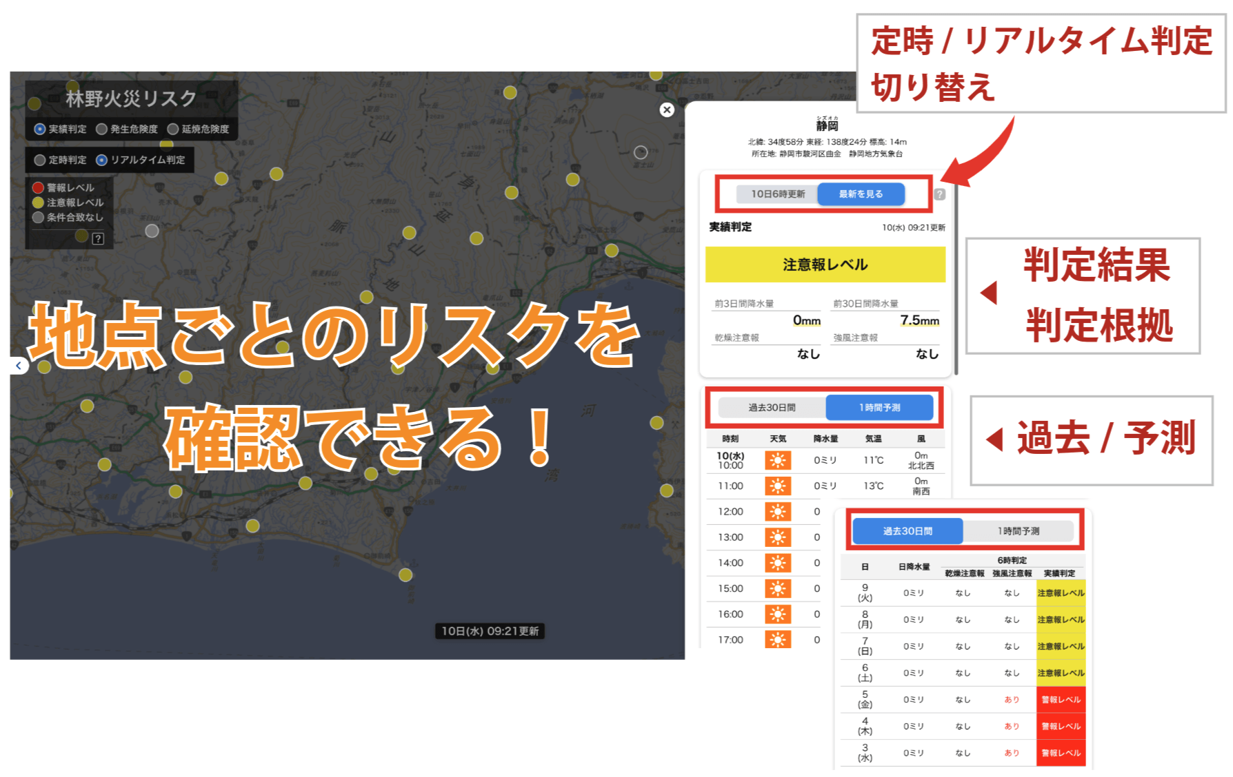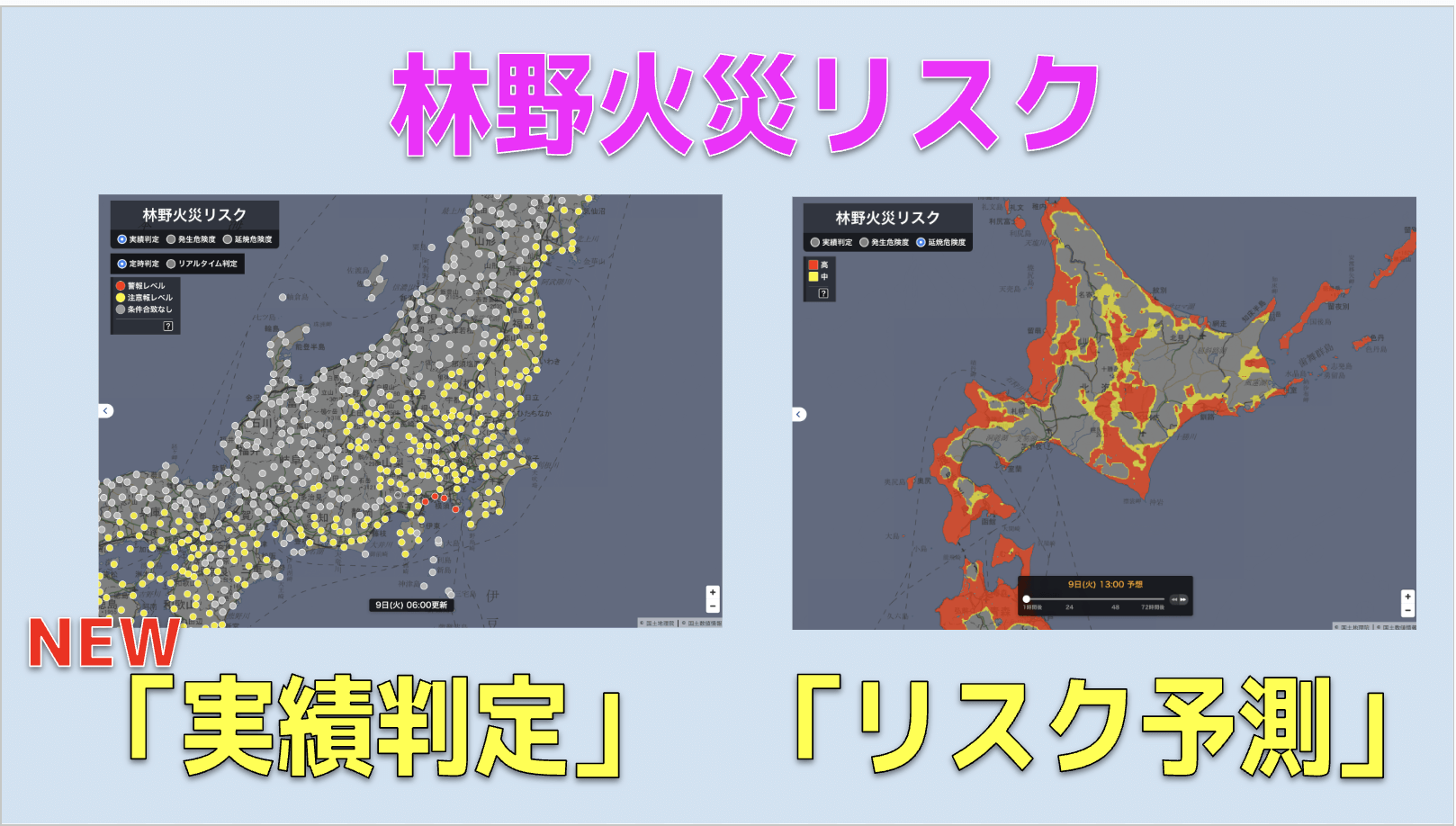 ②72時間先までの林野火災リスク予測を確認可能!