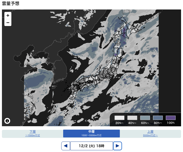この先の「雲量」予想マップ