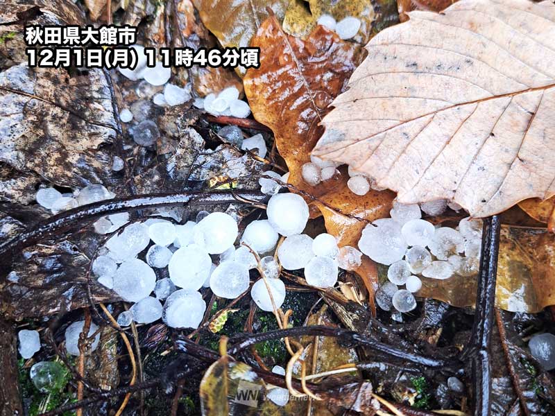 夜にかけても北陸や東北の日本海側で雨の降りやすい天気が続きます。雷や霰(あられ)を伴う可能性もあるため、天気の急変にお気をつけください。