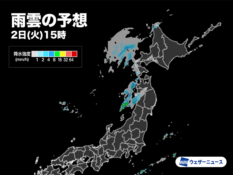 北日本や北陸では雷を伴った強い雨の降る可能性があり、落雷や突風、霰、強風による横殴りの雨にも注意が必要です。