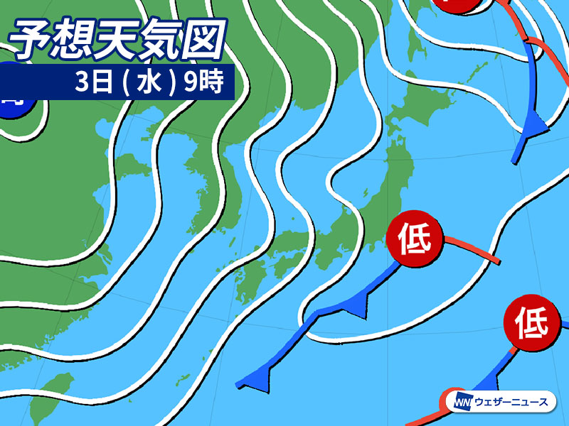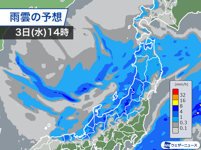 関東から西の太平洋側は雲が広がりやすく、雨の降るところもある見込みです。外出の際は折りたたみ傘をお持ちください。