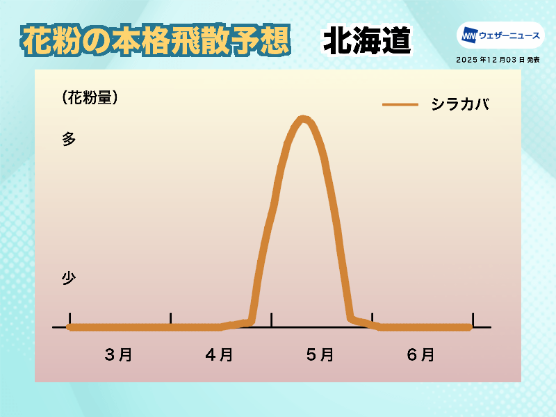 2025年の夏は暖かい空気に覆われる日が多く、気温は平年に比べてかなり高くなりました。日照時間も平年よりかなり長く、雄花の生長に適した天候となりました。また、2025年の飛散量は前年を下回りました。