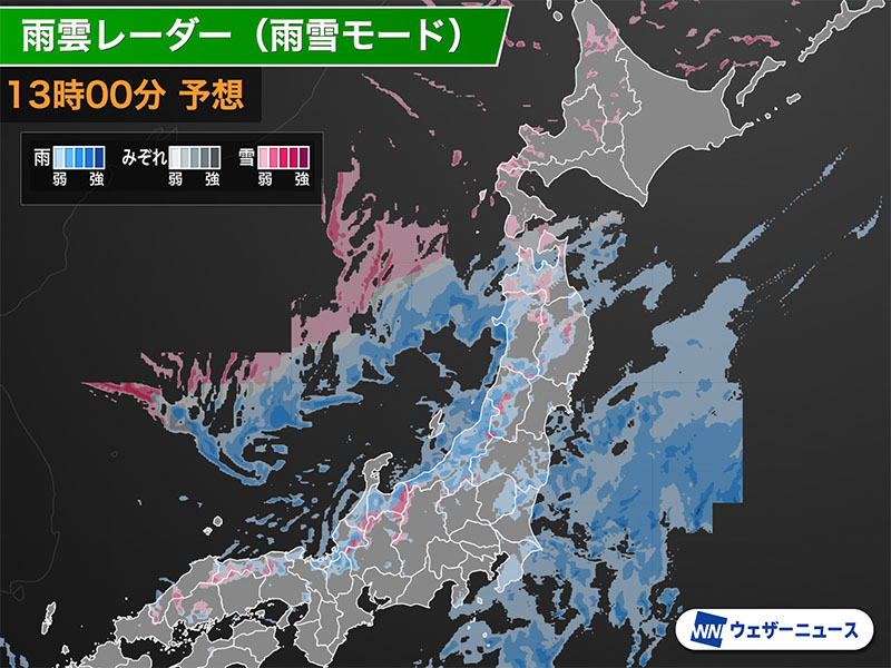 東北の日本海側は雪や雨で、山沿いでは大雪のおそれがあります。東北の太平洋側は雲が多く、雨や雪の降る可能性があります。