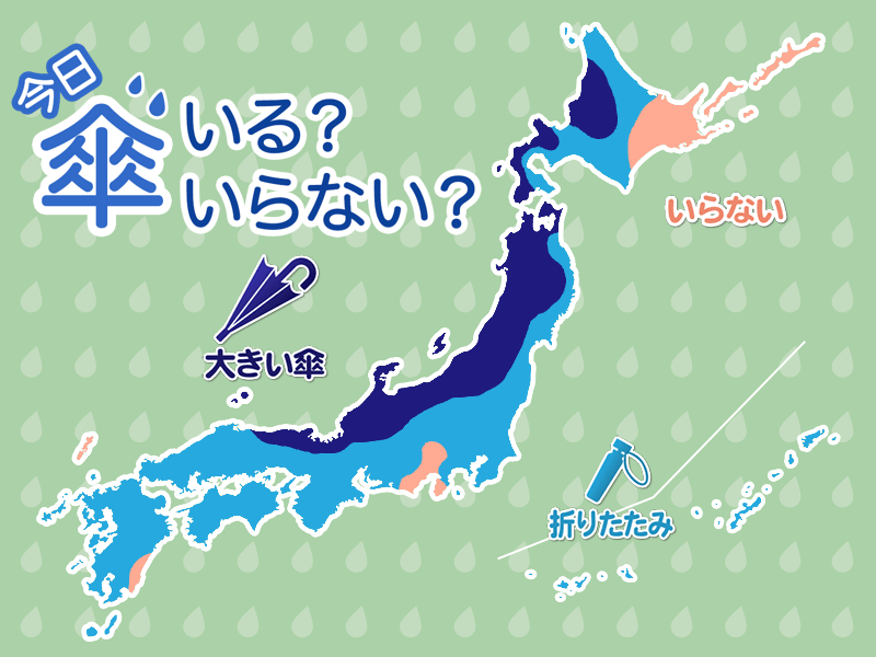 西日本太平洋側は午後の天気が回復傾向となるため、帰り道は傘の置き忘れに注意が必要です。