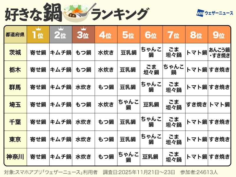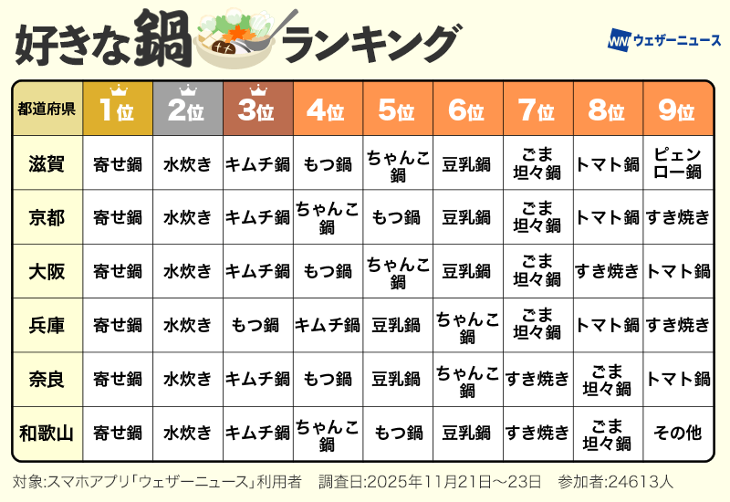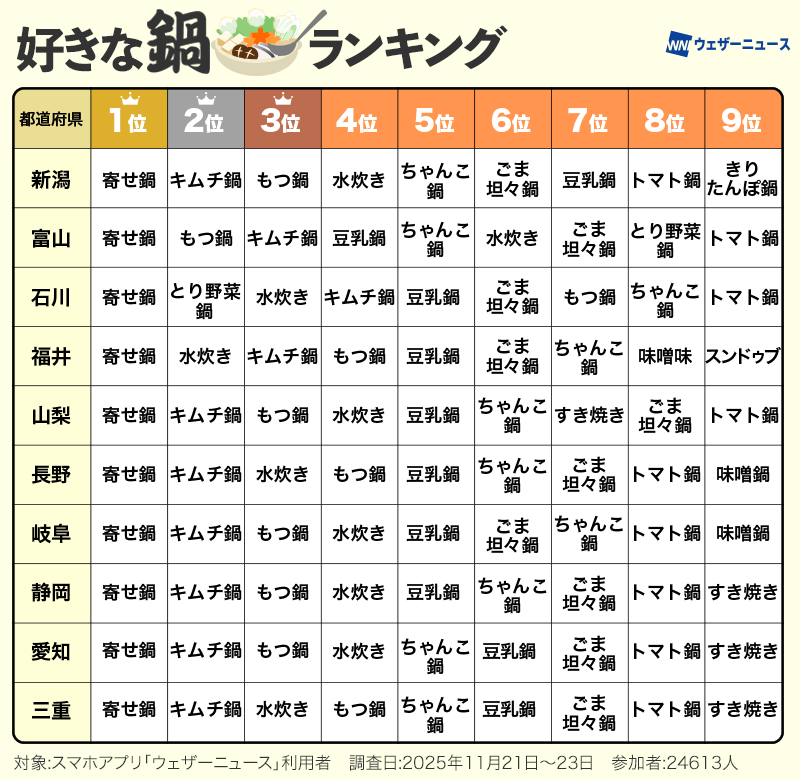 ウェザーニュースでは、スマホアプリユーザーに対して、好きな鍋についての調査を実施しました。47都道府県ごとのランキングをご紹介します。