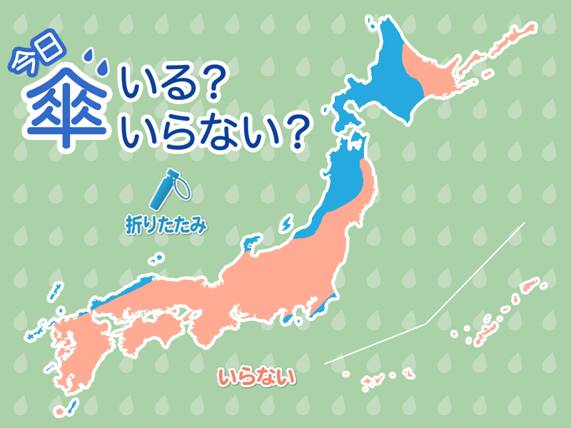 南西諸島でもにわか雨の可能性はありますが、降っても雨宿りでしのげそうです。心配な方は折りたたみ傘があっても良さそうです。