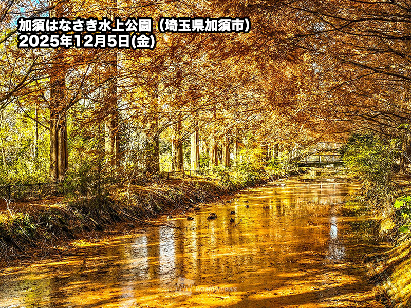 今後は周期的に寒気が南下する予想で、例年12月に見頃を迎える名所は平年並の見頃になる所が多く、既に見頃となっている名所は落葉が進みます。