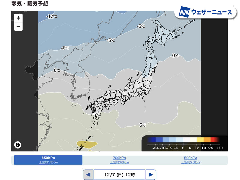暖気・寒気の流れ込み予想