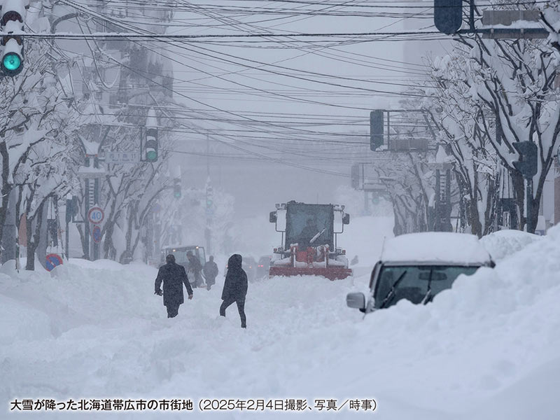 例えば、昨冬2月上旬の北海道十勝地方の大雪については、北海道の西と三陸沖の温帯低気圧に伴う風によって、多量の水蒸気が低温の十勝平野に流入することで強い雪が降ったとされています。