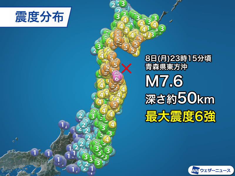 青森県で震度6強 国内では能登半島地震以来 津波警報発表