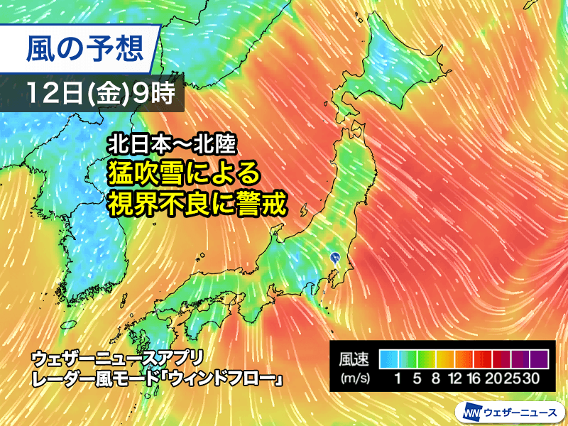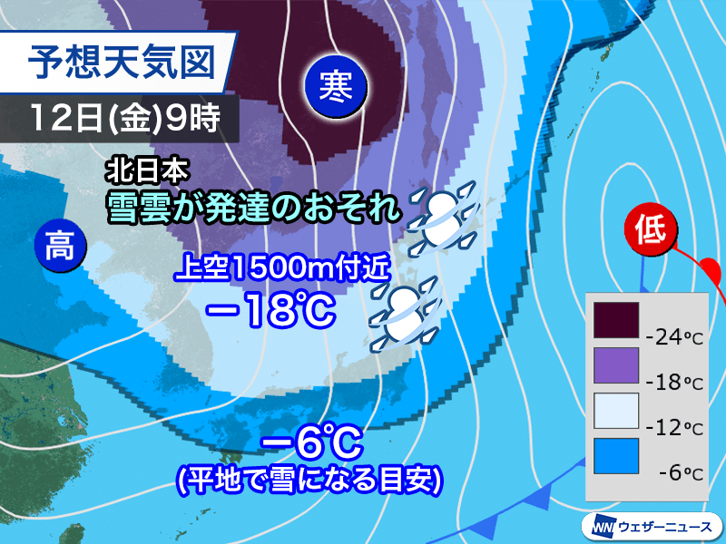 12日(金)は強力寒気が南下 北日本中心に強い雪や吹雪警戒