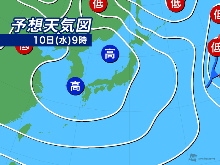 関東から西日本にかけては、晴れて穏やかな天気が続くところが多くなる見込みです。