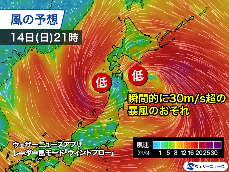 瞬間的には30m/s超の暴風のおそれ