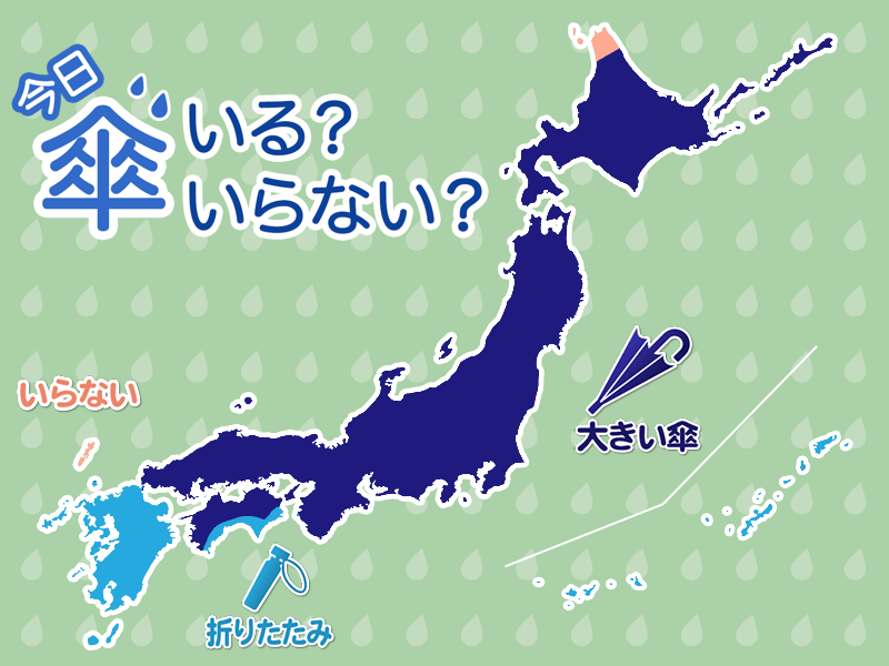 近畿では朝と夜に雨の降る可能性があり、山陽もにわか雨の可能性があります。風が強く吹くためしっかりとした傘をご用意ください。