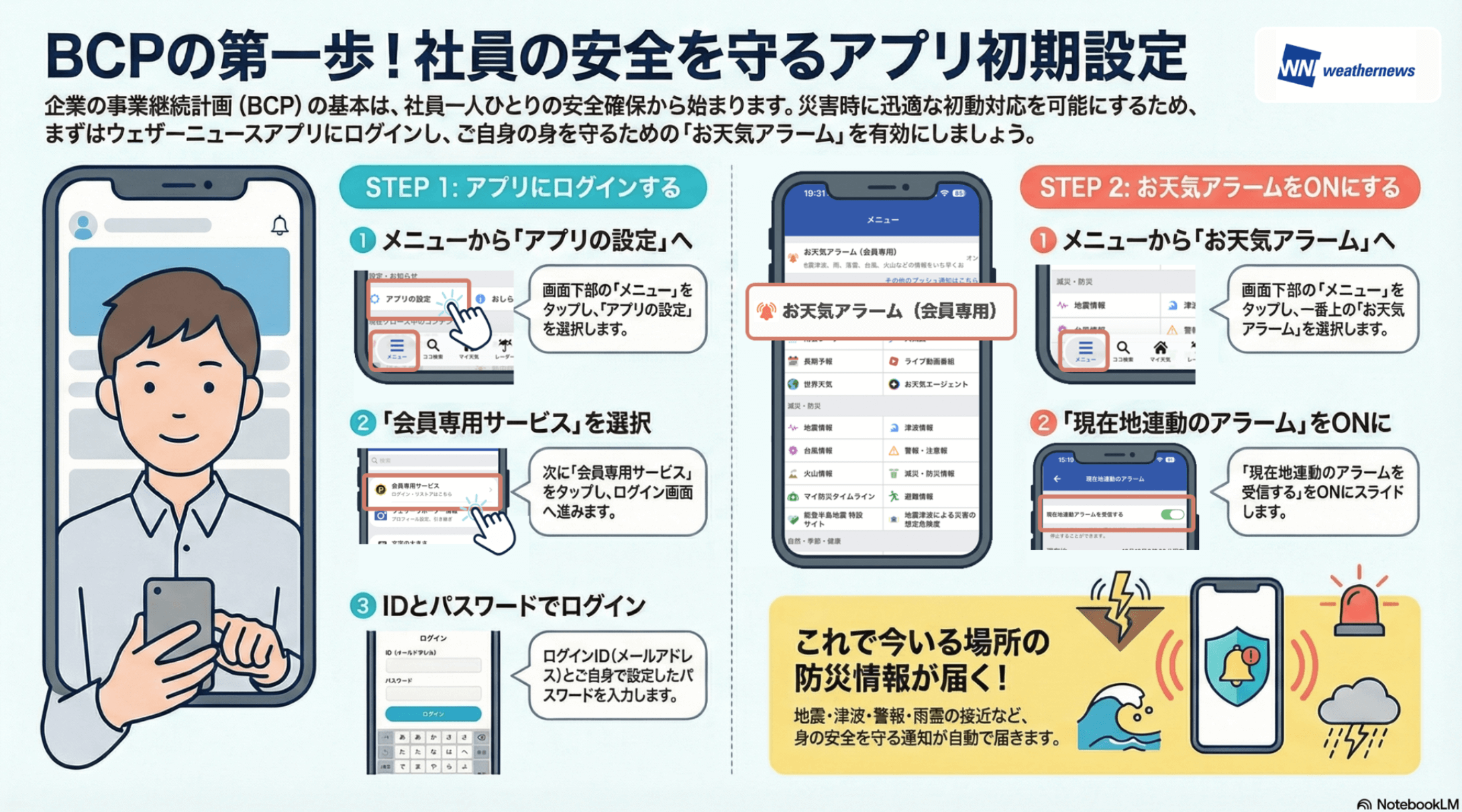 次の地震に備えるためにも、この機会に必ず設定内容を見直し、従業員の皆さまの安全確保にお役立てください。