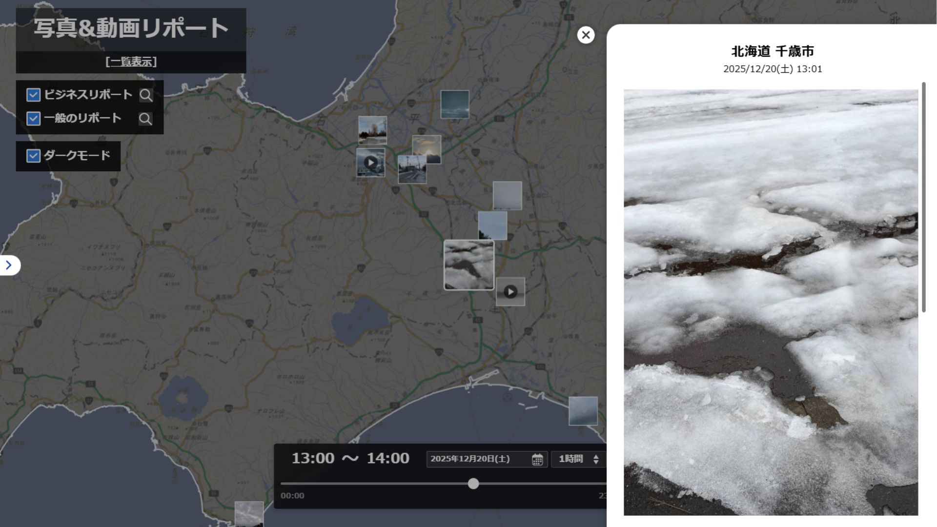 ウェザーニュース for businessの「写真&動画リポート」では、アプリユーザーの皆様から寄せられた写真や動画のリポートをご覧いただけます。