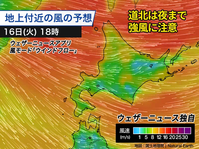 ただ、北海道の周辺はまだ等圧線が混み合っていて道北を中心に強風が続いています。