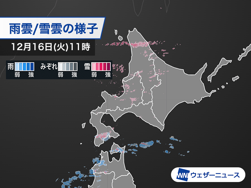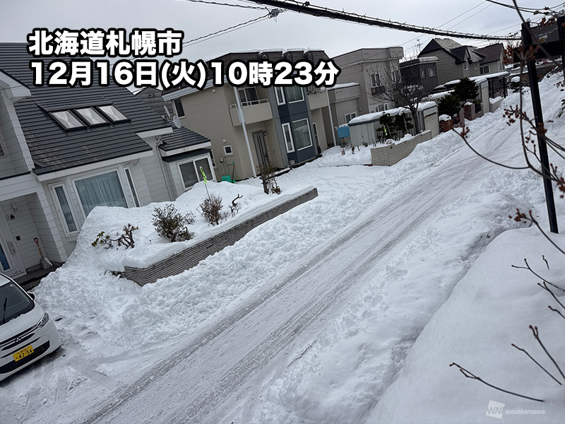 昨日15日(月)に暴風雪をもたらした低気圧はオホーツク海に離れ、荒天のピークを越えました。