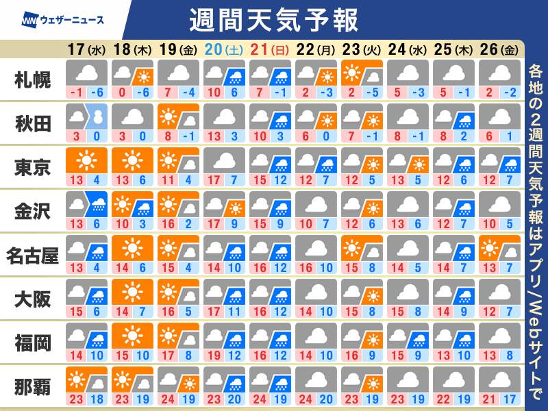 週間天気予報 週末は季節外れの暖かさ 北日本は周期的に雨や雪