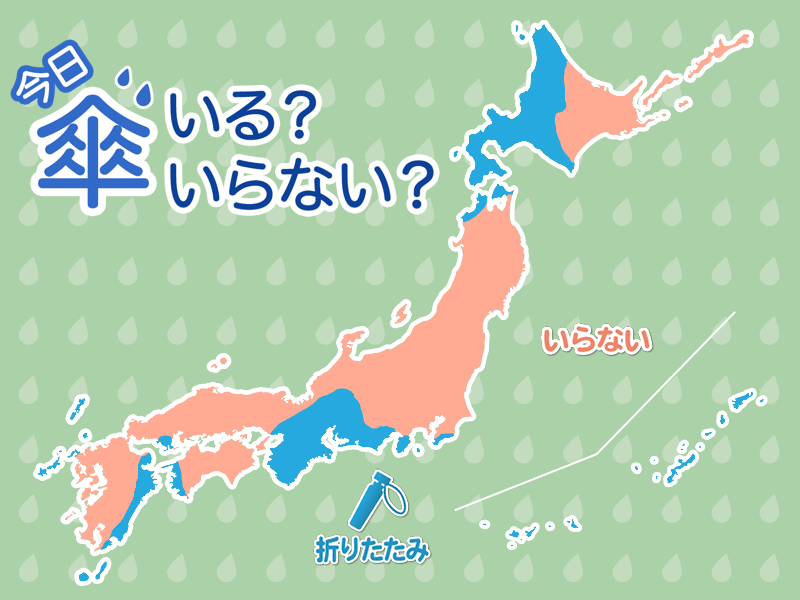 今日は大きい傘が必要なほど雨や雪が長い時間降り続く所はなさそうです。