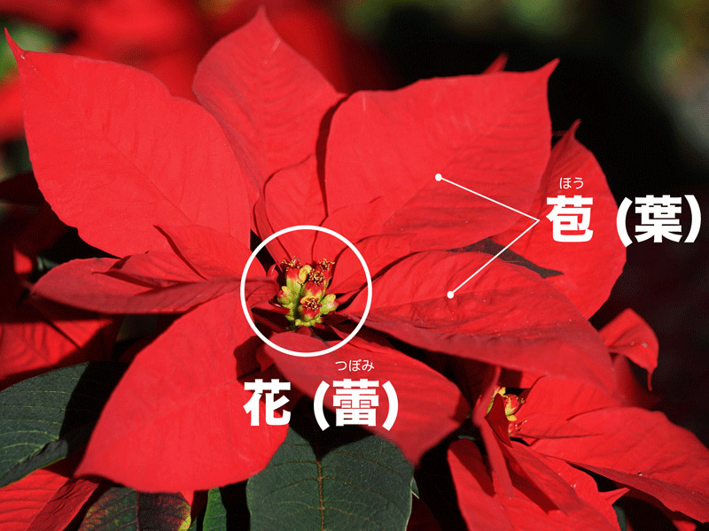 ポインセチアはトウダイグサ科トウダイグサ属の常緑低木で、メキシコが原産です。和名はショウジョウボク(猩々木)といいます。