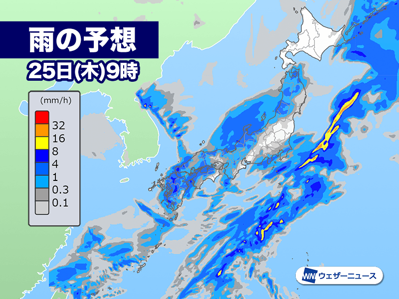 西日本太平洋側では広く雨が降りますが、午後は雨が止む時間が長くなります。帰り道は傘の置忘れに注意してください。