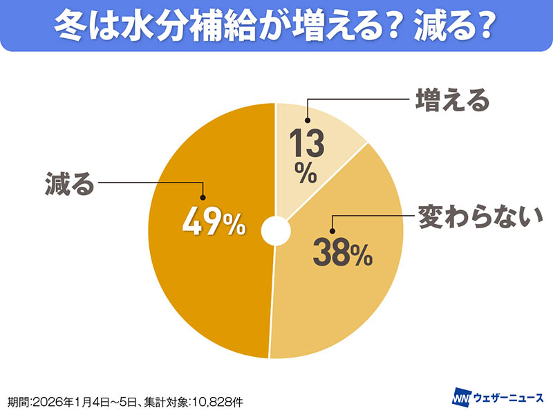 やはり、多くの人が冬は水分補給の頻度が減少傾向にあるようですが、「今の季節も水分補給に気を抜かないで!」と、イシハラクリニック副院長・石原新菜先生は強調します。