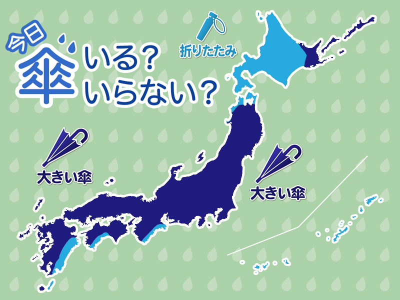 西日本の太平洋側もにわか雨の可能性がありますので、折りたたみ傘があると安心です。