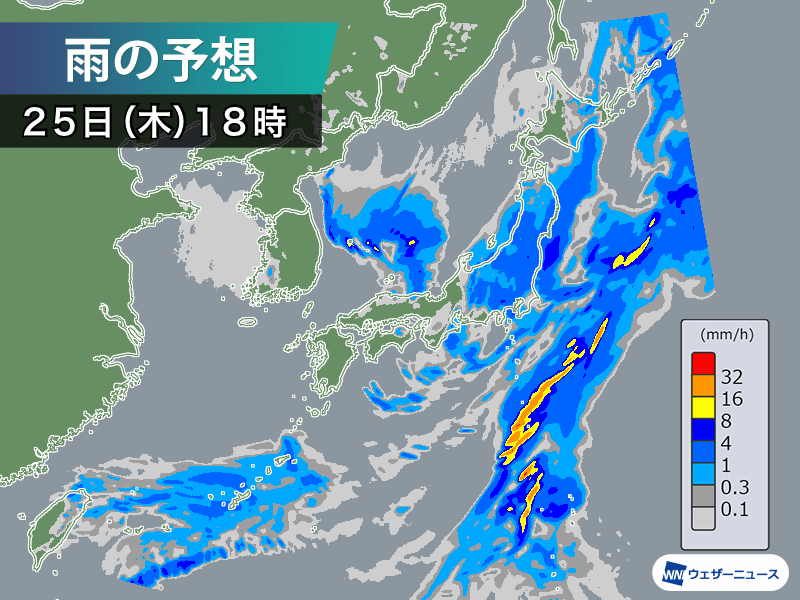 このあと雨雲は東進し、東海や東北南部では午前中から、関東でも午後は雨が降りやすくなります。山陰や北陸では一時的に雨が強まったり、雷やあられを伴う可能性があるため注意してください。