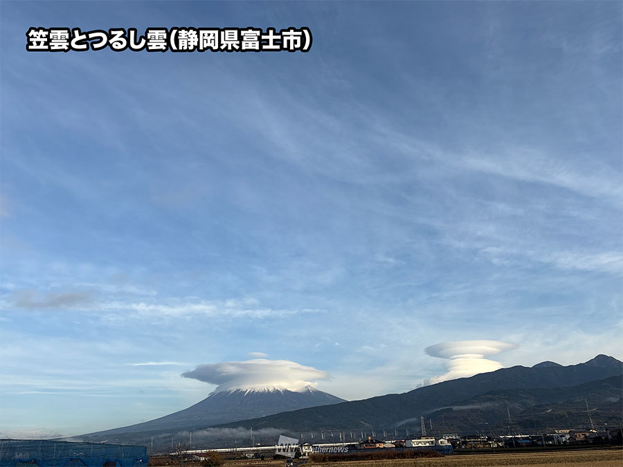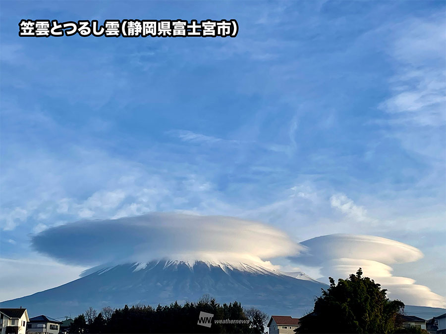 富士山周辺に笠雲やつるし雲が出現 天気が下り坂に向かう予兆