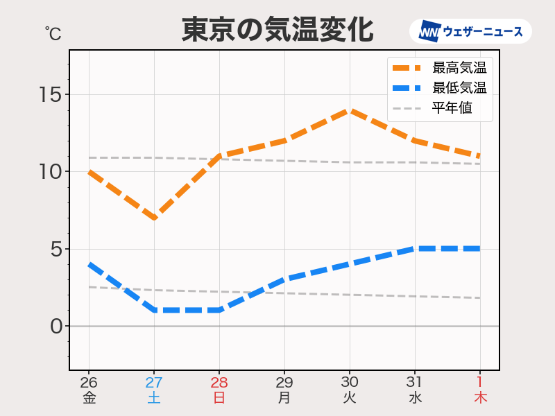 日毎の気温差が大きい