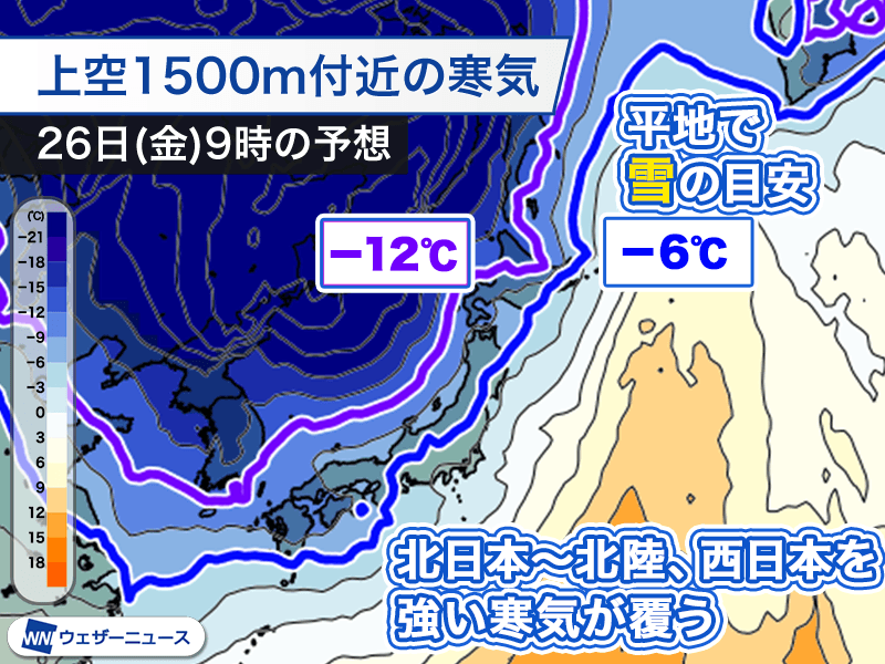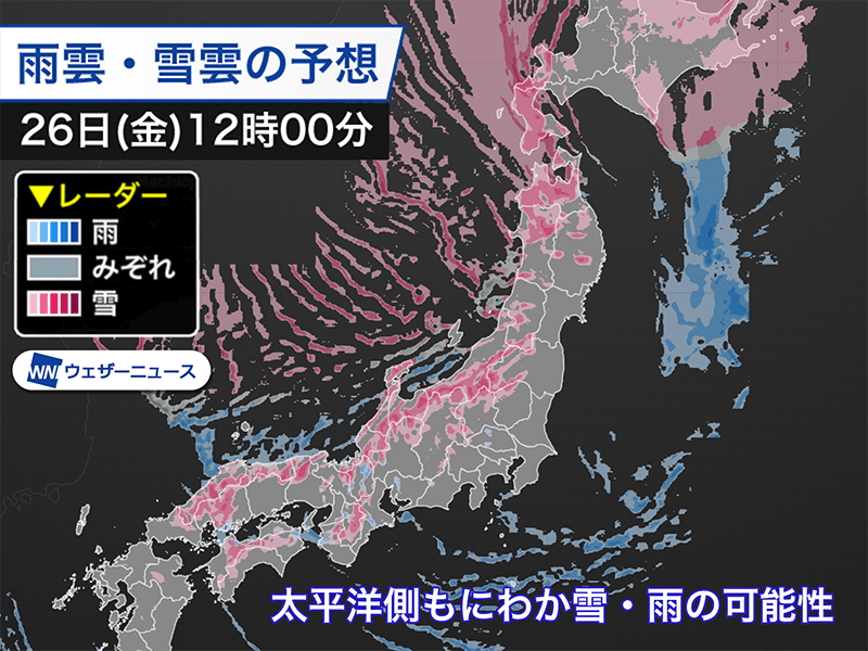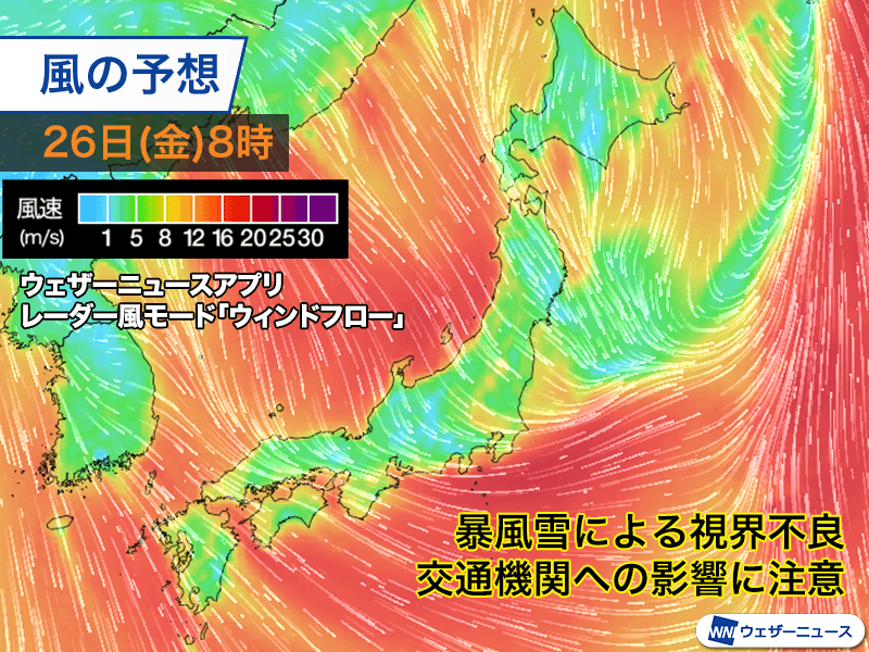 26日(金)は日本海側で大雪に警戒 風が強まり猛吹雪となるおそれも