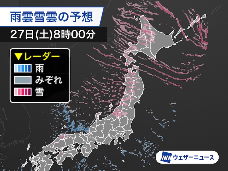 西日本の日本海側は天気が回復し、雪は午前中で収まります。瀬戸内側や太平洋側は朝から晴れる所が多い見込みです。