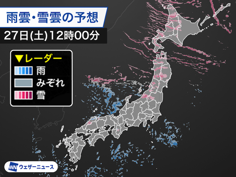 今日27日(土)も、北日本から北陸にかけては冬型の気圧配置が続いています。