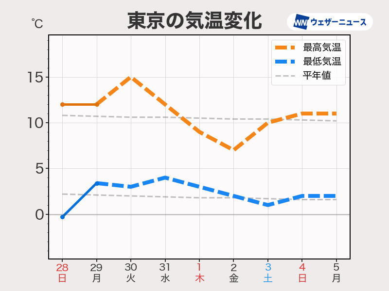 北日本や西日本では30日(火)にかけて、東日本では31日(水)にかけて気温が高めで、この時期としては比較的過ごしやすくなる予想です。