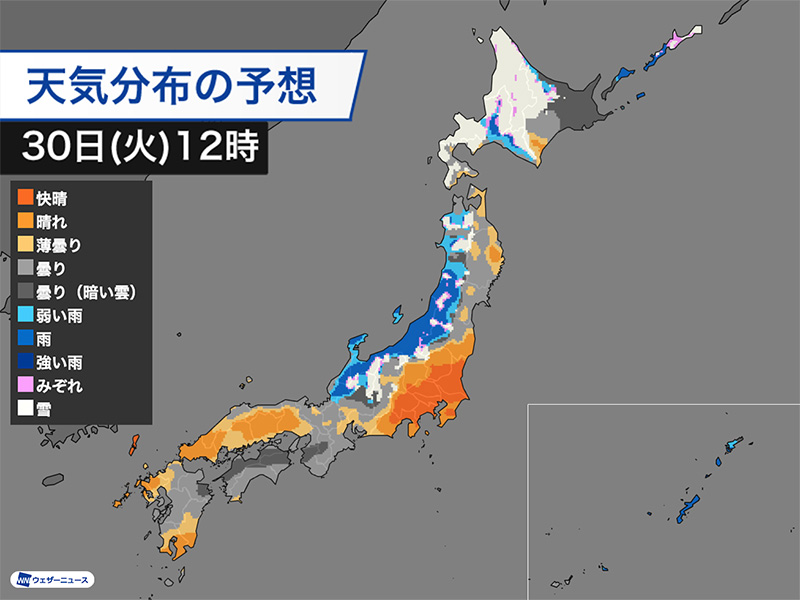 北日本と北陸は雨や雪 関東から九州は日差しが暖かい
