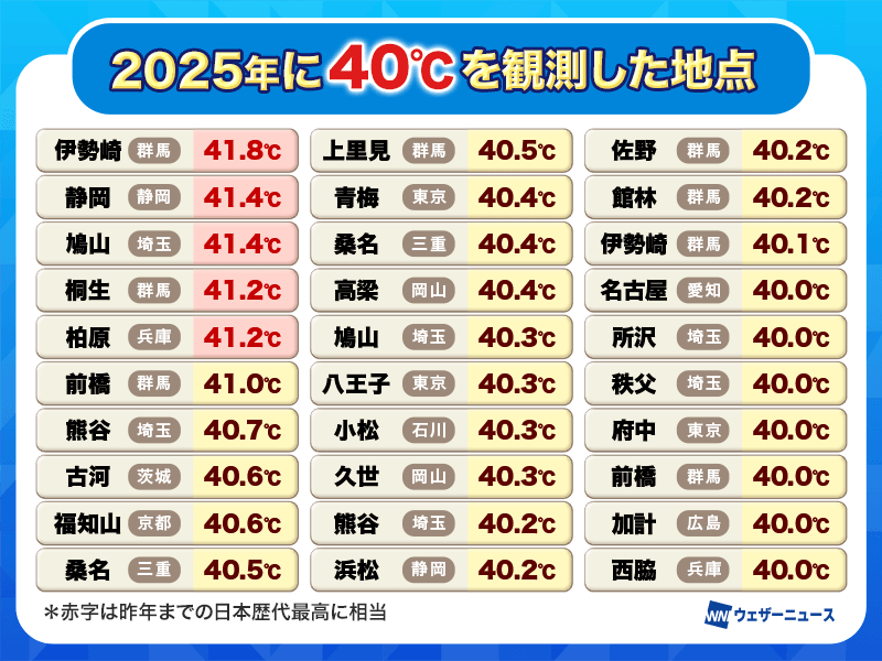 関連記事「群馬県伊勢崎市で国内歴代最高の41.8℃」