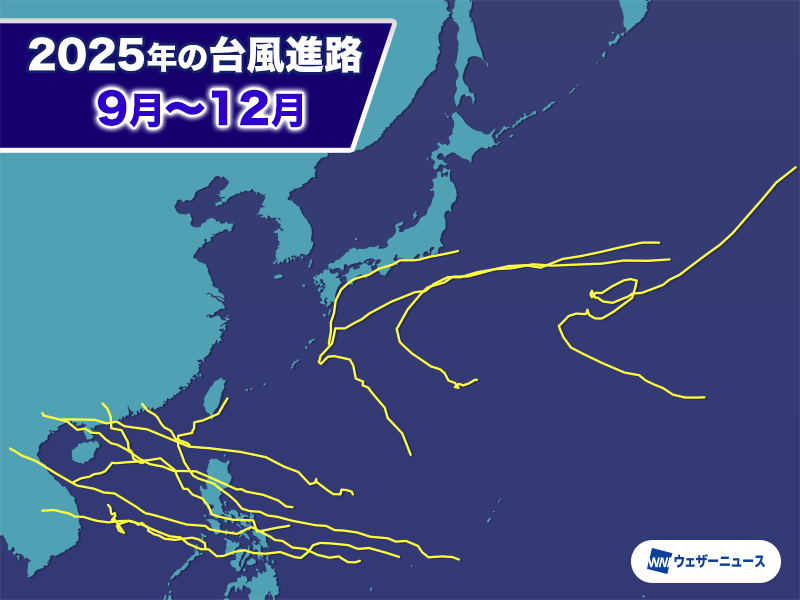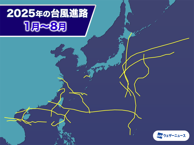 今年は1号の発生が6月と遅かったものの、8月までに14個発生しました。この期間は高気圧が本州付近を覆っていることが多く、西日本に近づいたのは東シナ海で発生直後に上陸した台風12号だけです。