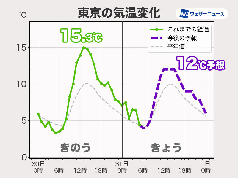 関東以西の太平洋側は寒さ戻る