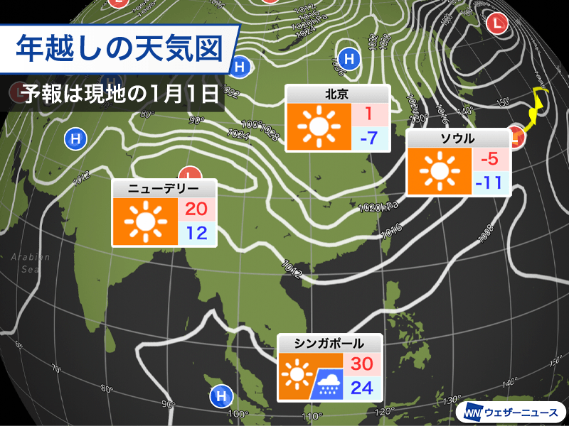 アジアは北で寒く南は穏やかな年越し