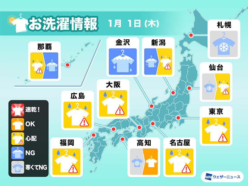 また、日差しが届いてもにわか雨の可能性があります。初詣などで長時間外出される場合も、部屋干しが安心です。