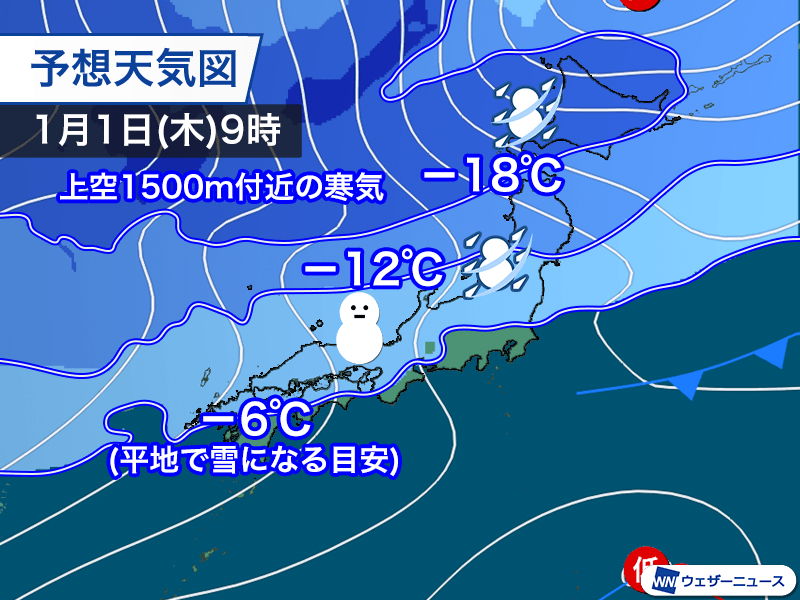 年を跨ぐように寒気が南下 日本海側は年明け早々大雪注意