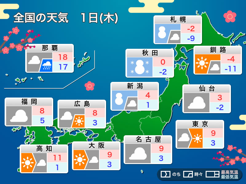 また、北日本では風も強く、吹雪になるおそれがあります。路面状況の悪化や視界不良などに注意をしてください。