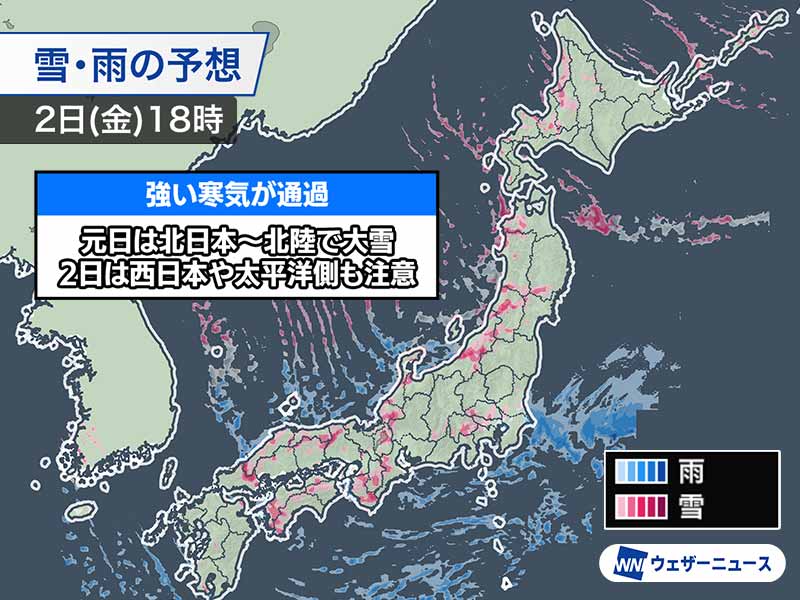 2日は西日本日本海側も大雪に注意